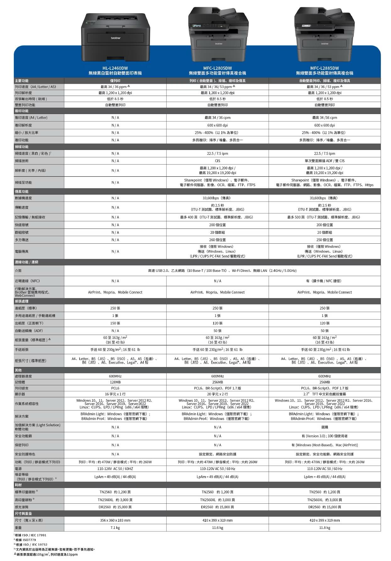- 行動列印:Brother iPrint & Scan/AirPrint/Mopria