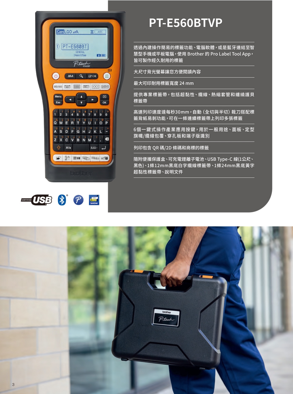 Brother PT-E560BTVP 工業用無線手持式鍵盤標籤機