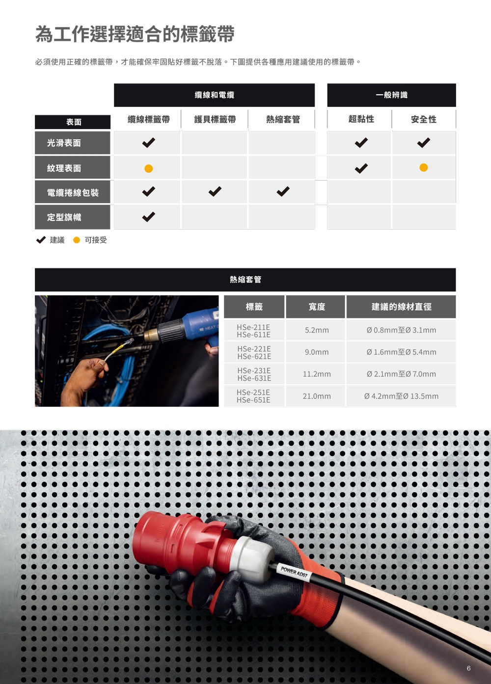 可切割各種標籤帶(寬度3.5–24 mm))及 HSe 熱縮套管(5.8–23.6 mm),標籤切割更精準又省時。